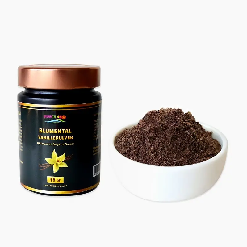 • Blumental Vanille wird aus ausgewählten, handverlesenen Vanilleschoten ohne jegliche Zusatzstoffe hergestellt. Unsere qualitativ hochwertigen Vanilleschoten stammen aus Madagaskar, wo sie angebaut, geerntet, luftgetrocknet, zu einem kräftigen, dunkelbraunen Pulver gemahlen und dann nach den HACCP-Vorgaben in Bayern verpackt werden